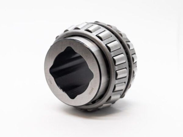 385SD tapered roller bearing with 1-1/2″ square bore. Double cone design for high load capacity.